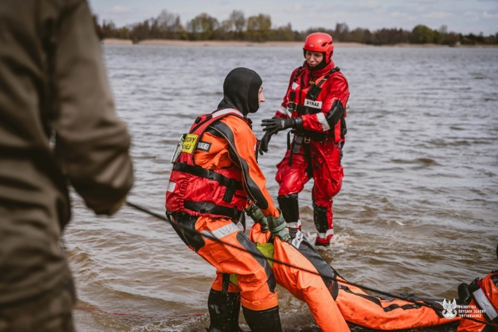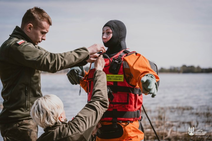 W trakcie ćwiczeń zaprezentowano wyposażenie indywidualne do pracy w środowisku wodnym. Pokazano specjalistyczne kombinezony używane przez obie formacje.