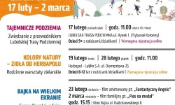 Tajemnicze podziemia to pierwsza z atrakcji, zaplanowana na 17 lutego o godz. 11.00. Uczestnicy w wieku od 9 do 17 lat, wraz z opiekunami, odkryją Lubelską Trasę Podziemną pełną legend i historycznych ekspozycji. Zwiedzanie obejmuje panoramy Lublina oraz makiety obrazujące rozwój miasta. Rejestracja rusza 14 lutego o godz. 9.00 na stronie trzyplus.lublin.eu.