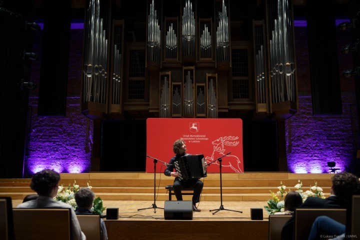 Dzisiejszym wręczeniem stypendiów wspieramy młodych ludzi, którzy łamią stereotypy i zajmują się szeroko rozumianą kulturą, pielęgnując tradycje oraz dziedzictwo kulturalne i narodowe. Cieszymy się, że udzielamy im wsparcia w ich pasjach, że możemy śledzić ich dokonania w naszym kraju i poza jego granicami. Z tego miejsca zachęcam kolejnych młodych ludzi do podejmowania działań na rzecz kultury – powiedział członek Zarządu Województwa Lubelskiego Marcin Szewczak.