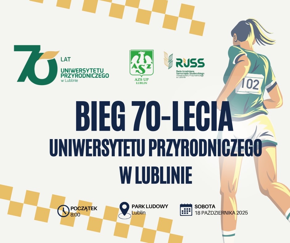 Jeśli lubisz zaczynać dzień aktywnie, a do tego chcesz być częścią wyjątkowego wydarzenia, nie możesz tego przegapić! Uniwersytet Przyrodniczy w Lublinie świętuje 70-lecie i zaprasza całą społeczność akademicką – studentów, doktorantów oraz pracowników – na Bieg Jubileuszowy w Parku Ludowym.