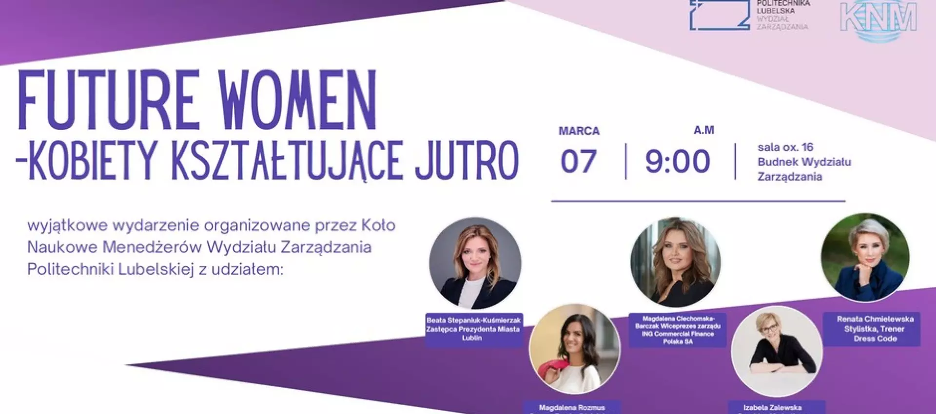 Dzień Kobiet na Politechnice Lubelskiej będzie obchodzony w inspirujący sposób. Studenci Koła Naukowego Menedżerów organizują wydarzenie „FUTURE WOMEN – KOBIETY KSZTAŁTUJĄCE JUTRO”, które odbędzie się w piątek, 7 marca, w godz. 9.00-12.00 w sali Ox16 na Wydziale Zarządzania. Spotkanie ma na celu pokazanie, jak kobiety osiągają sukces i przełamują bariery w biznesie oraz administracji publicznej.