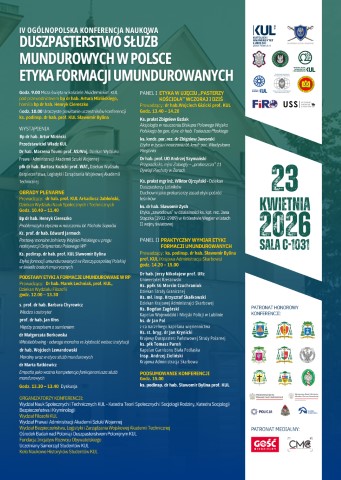 23 kwietnia 2026 roku w Katolickim Uniwersytecie Lubelskim Jana Pawła II odbyła się IV Ogólnopolska Konferencja Naukowa „Duszpasterstwo Służb Mundurowych w Polsce – Etyka formacji umundurowanych”. Do Lublina przyjechali naukowcy, kapelani i przedstawiciele służb mundurowych z różnych części kraju. Rozmowy dotyczyły etyki służby, morale funkcjonariuszy oraz roli duszpasterstwa w formacjach mundurowych.