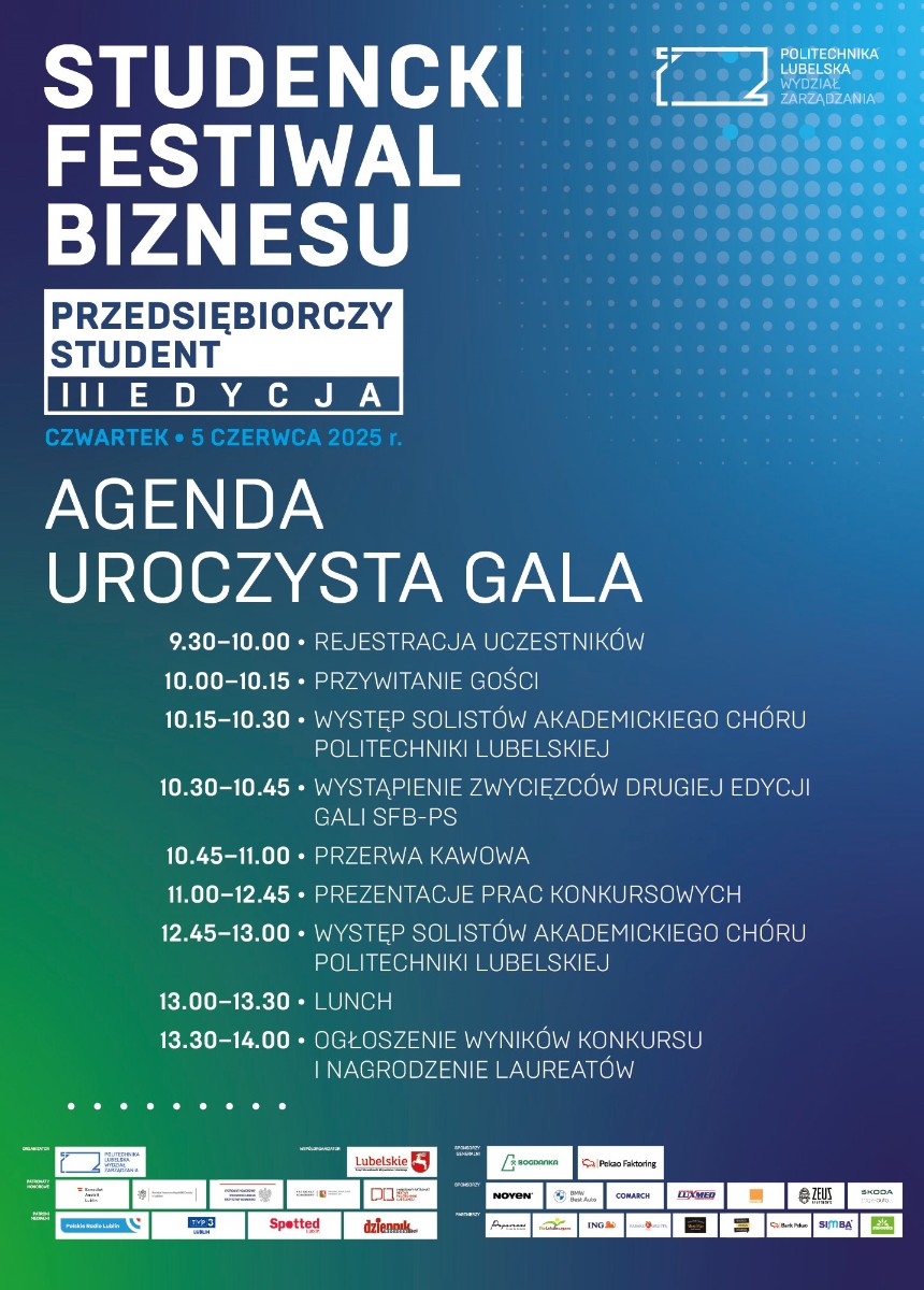 Lubelskie firmy zgłaszają konkretne problemy – studenci proponują praktyczne rozwiązania. Taka idea stoi za Studenckim Festiwalem Biznesu, który już 5 czerwca po raz trzeci odbędzie się w Lublinie. Gala finałowa w Lubelskim Centrum Konferencyjnym to nie tylko prezentacja pomysłów, ale też pokaz, jak młodzi ludzie radzą sobie w rzeczywistych warunkach.