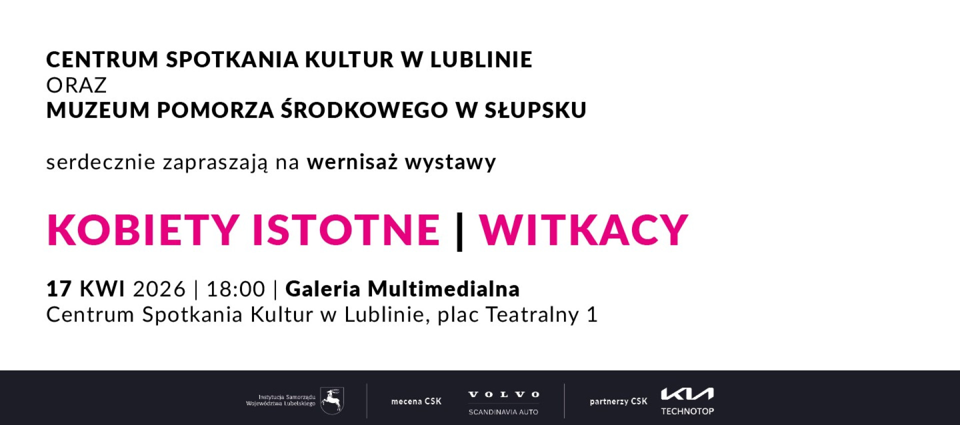 Centrum Spotkania Kultur w Lublinie zaprasza na wernisaż wystawy „Kobiety istotne. Witkacy”. Otwarcie odbędzie się 17 kwietnia 2026 roku o godz. 18:00 w Galerii Multimedialnej na poziomie +1. Wystawa będzie dostępna dla zwiedzających od 17 kwietnia do 31 grudnia 2026 roku w godzinach otwarcia obiektu. Wstęp jest bezpłatny.