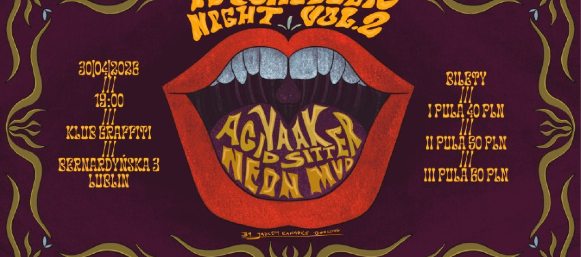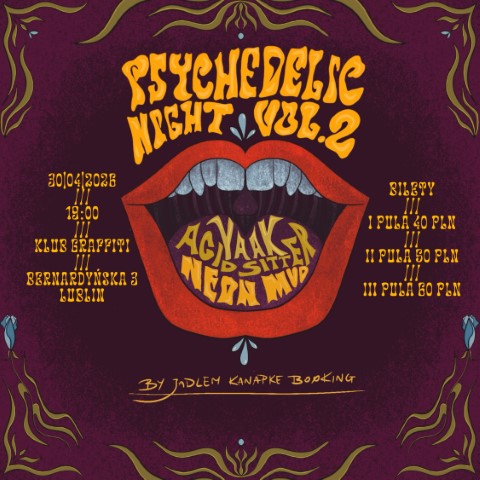 Psychedelic Night vol. 2 zapowiada się jako spotkanie dla tych, którzy lubią brzmienia zanurzone w psychodelii, stonerze i doomie. Całość odbędzie się w klubowej przestrzeni przy ul. Bernardyńskiej, dobrze znanej fanom gitarowego grania w Lublinie.