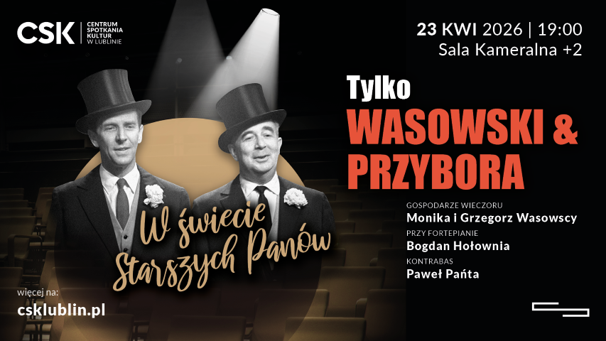 23 kwietnia 2026 r., godz. 19.00–21.00 w Sali Kameralnej CSK odbędzie się koncert i opowieść „Tylko Wasowski i Przybora”.