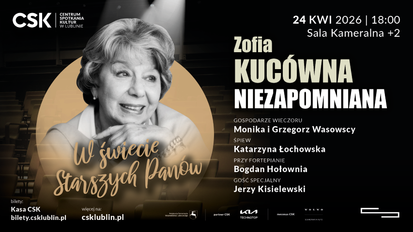 24 kwietnia 2026 r., godz. 18.00–20.00 zaplanowano wydarzenie „Zofia Kucówna – niezapomniana”.